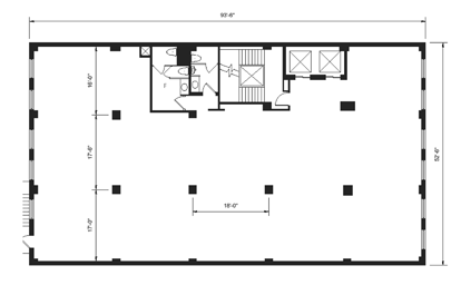 West side of 2nd floor. Custom buildout. Landlord will build to suit.